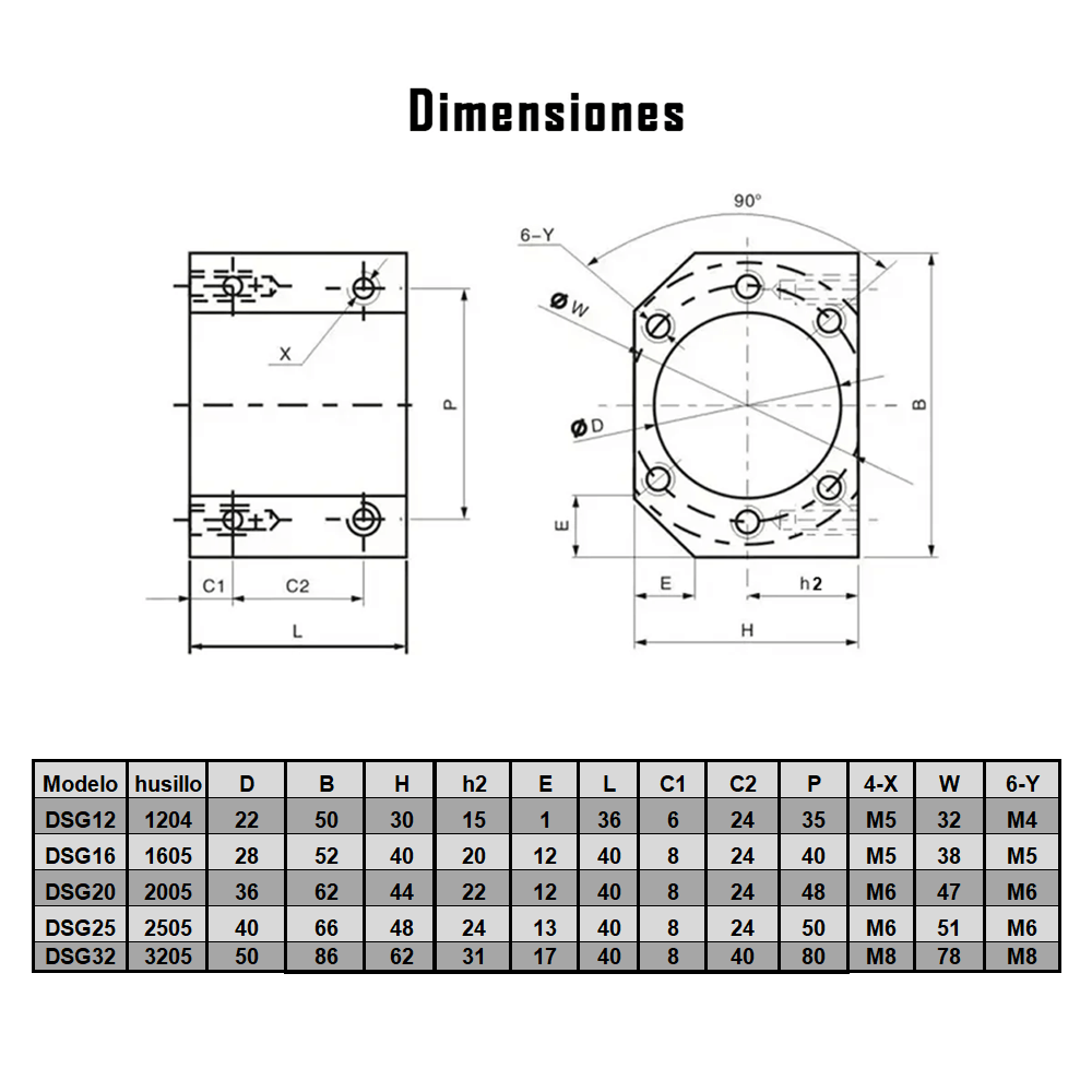 El Soporte DSG para Tuerca es un componente esencial diseñado para proporcionar un alojamiento seguro y estable a las tuercas en sistemas de movimiento lineal. Este soporte ha sido cuidadosamente desarrollado para garantizar una integración sin problemas con tuercas específicas, ofreciendo versatilidad y estabilidad en diversas aplicaciones que requieren un control preciso del movimiento.
