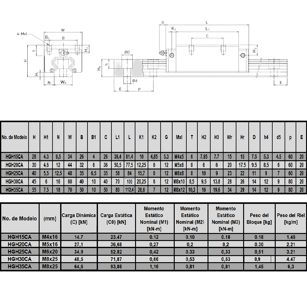 Los bloques de rodamiento lineal **HIWIN** serie **HGH** son un bloque de rodamiento lineal diseñado para ofrecer **alta capacidad de carga, estabilidad y precisión**, asegurando un desplazamiento suave y confiable en aplicaciones industriales exigentes. Gracias a su construcción robusta y su tecnología de recirculación de bolas, este modelo garantiza una distribución uniforme de la carga en todas las direcciones (radial, radial inversa y lateral), maximizando la eficiencia del sistema de movimiento lineal.