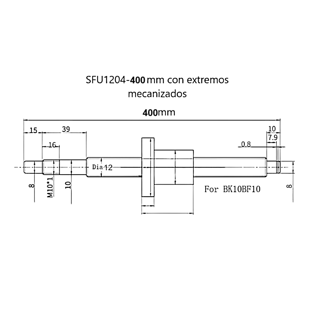 Kit Husillo hilo roscado SFU1204-400 mm
