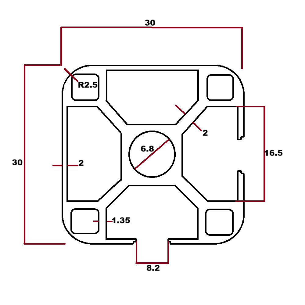 Perfil estructural ángulo liso aluminio Tslot 30x30x3000 mm