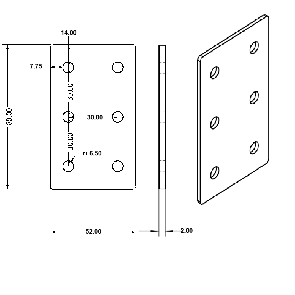 Placa Unión rectangular para perfil tslot 30x60 mm mate (pack 2und)