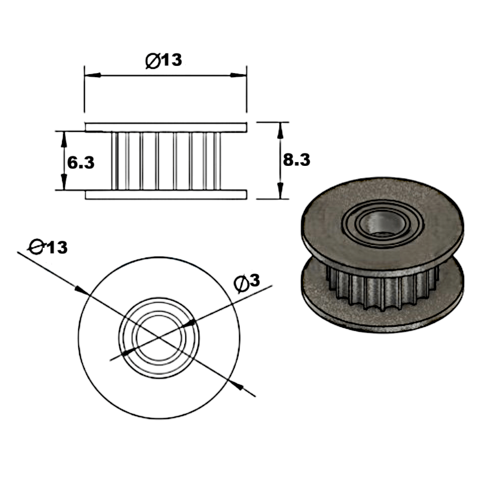 Polea de sincronización GT2-6 mm 16 dientes (D.I 3mm)