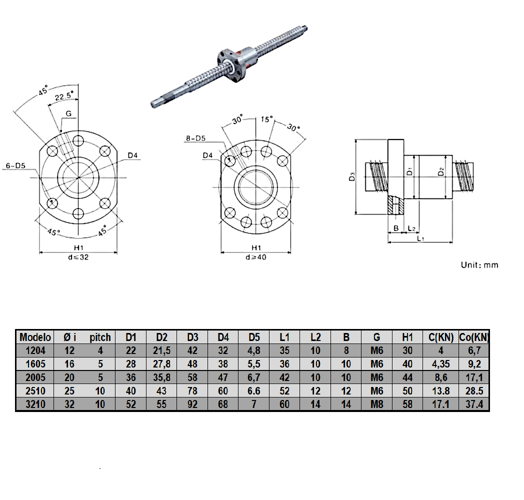 * Compatibilidad: Husillos SFU3210 de 32 mm de diámetro y paso 10 mm