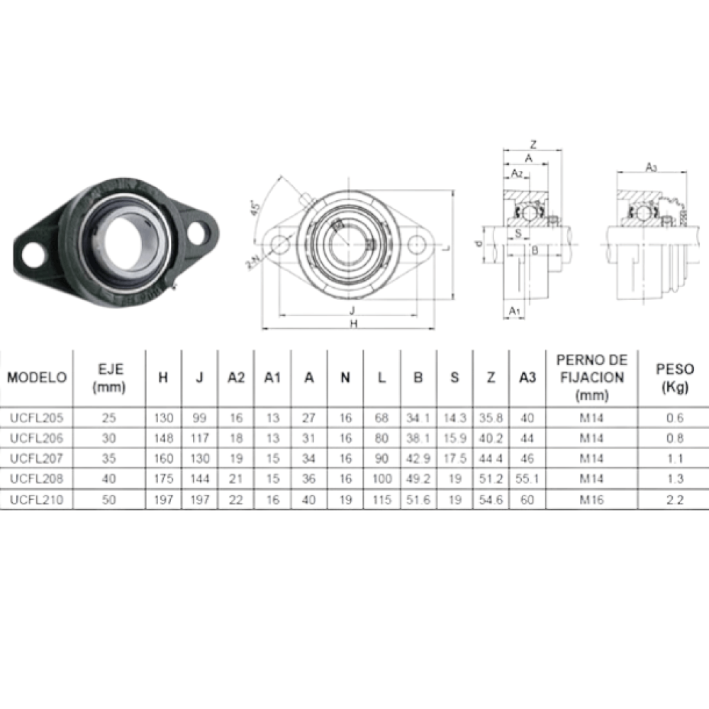 Los rodamientos UCFL son un tipo de rodamiento de montaje de brida ovalada que admite cargas pesadas cuando el eje del eje está en ángulo recto con la superficie de montaje. Está diseñado para ajustarse a la desalineación inicial del eje, lo que ayuda a reducir aún más el exceso de carga del rodamiento.