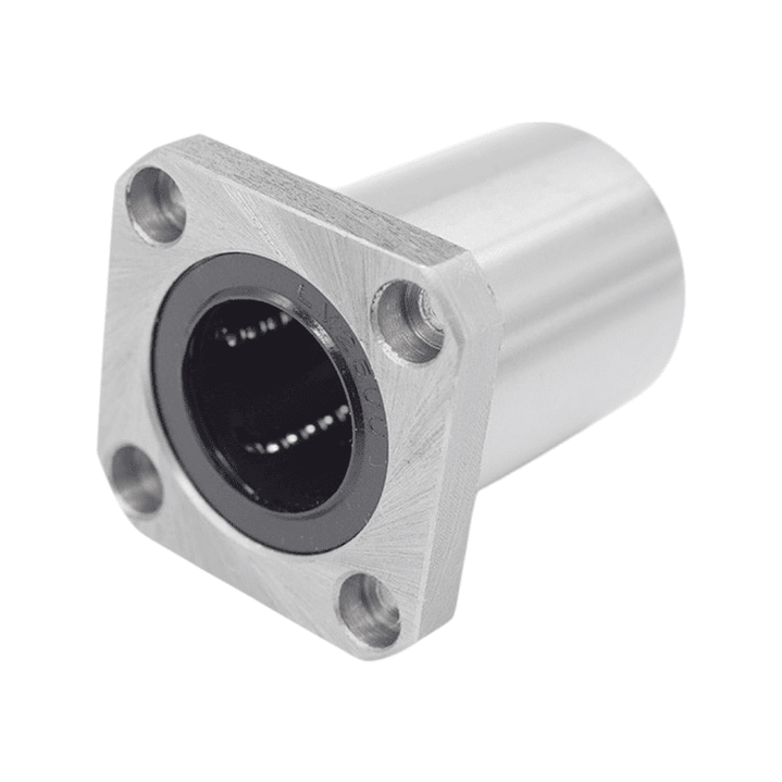El rodamiento lineal cerrado LMK con brida cuadrada es un componente de precisión diseñado para aplicaciones de movimiento lineal. Su diseño con flange de cuatro orificios permite una fijación segura a estructuras o marcos, facilitando la instalación vertical del eje y asegurando una guía estable y de bajo desgaste. Su diseño permite montar el eje de forma vertical y fija, lo que lo hace útil en estructuras que requieren que el eje salga perpendicular a una base o soporte. Esto no es posible con el LM (cilíndrico), y el LMF (con brida redonda) puede ser menos conveniente si se busca una alineación más sencilla con geometrías rectangulares.
